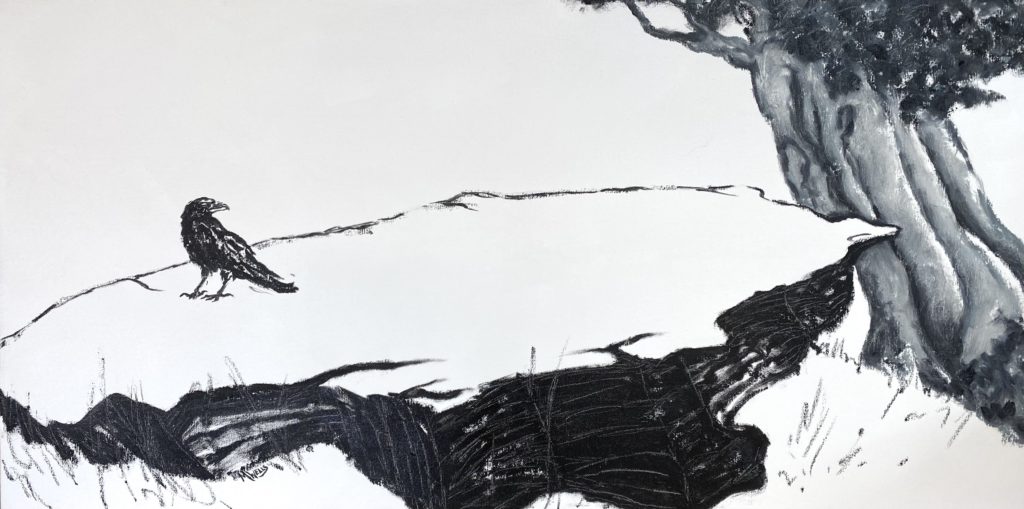 This sumi e painting in oil, “Raven”, is the beginning of a new series of explorations.